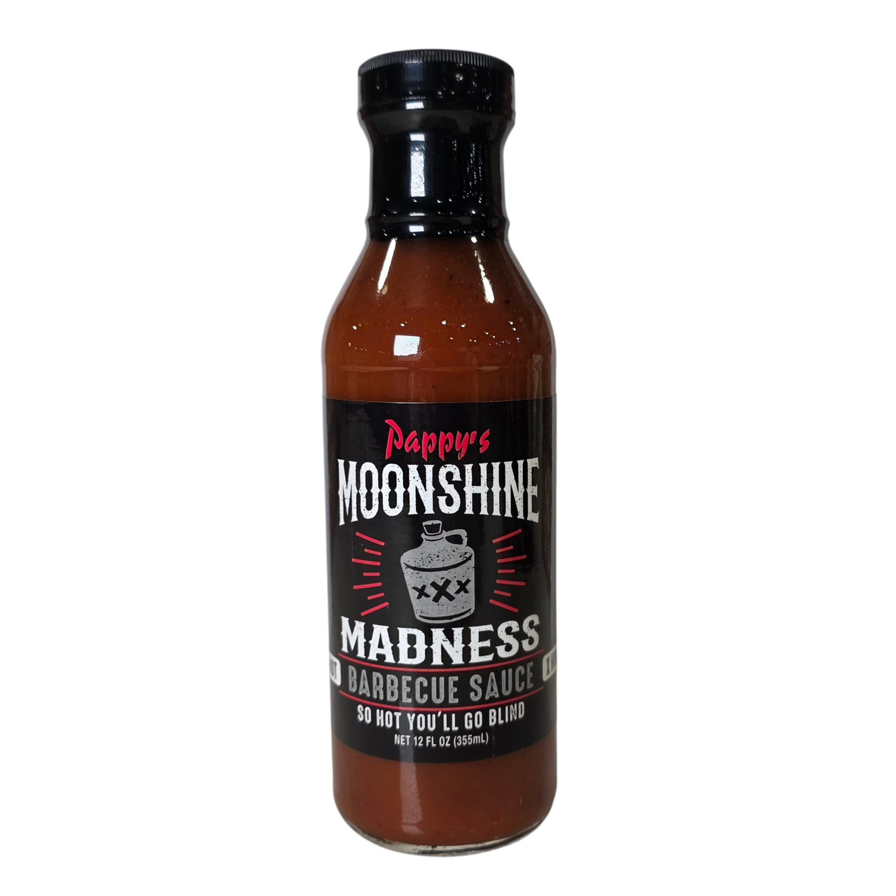 Pappy's Moonshine Madness, 12oz. - NEW LABEL DESIGN! Same Great Sauce! - So hot, you'll go blind! We're sure some chile heads will scoff that 'this ain't hot'. That's fine - keep in mind these are the same folks that think battery acid is a culinary treat. Enjoy a little Moonshine Madness, as each batch has just a little hooch to make it tasty, and a little 'madness' just to be cruel to sissies. Enjoy Pappy's Moonshine Madness, another fantastic creation by Shane Best, Kentucky's World Champion Grillmaster and the folks at Bourbon Q Brands Sauces. We figured we would hide this in plain sight, so that the Feds wouldn't find it!