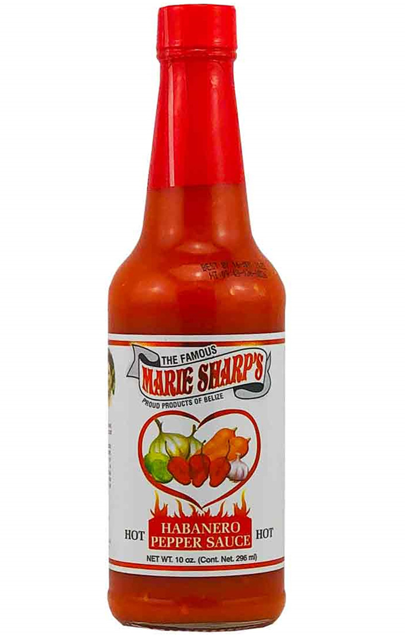 Marie Sharp's Hot Habanero Hot Sauce (10 FL.OZ. / 296 ml): Marie Sharp's Exotic Sauce is the finest product of its kind. This unique carrot-based blend achieves the perfect balance between flavor and heat. Nestled in the foothills of the Mayan mountains, Marie Sharp's factory still creates products the old-fashioned way; using the freshest vegetables and the finest ingredients. Her secret homemade recipe utilizes the potent red Habanero pepper. Produced in the fertile paradise of Belize, her red Habanero is considered to be the hottest variety of pepper known to man, Marie has spent many years cultivating a Habanero worthy of her recipe. She has succeeded.