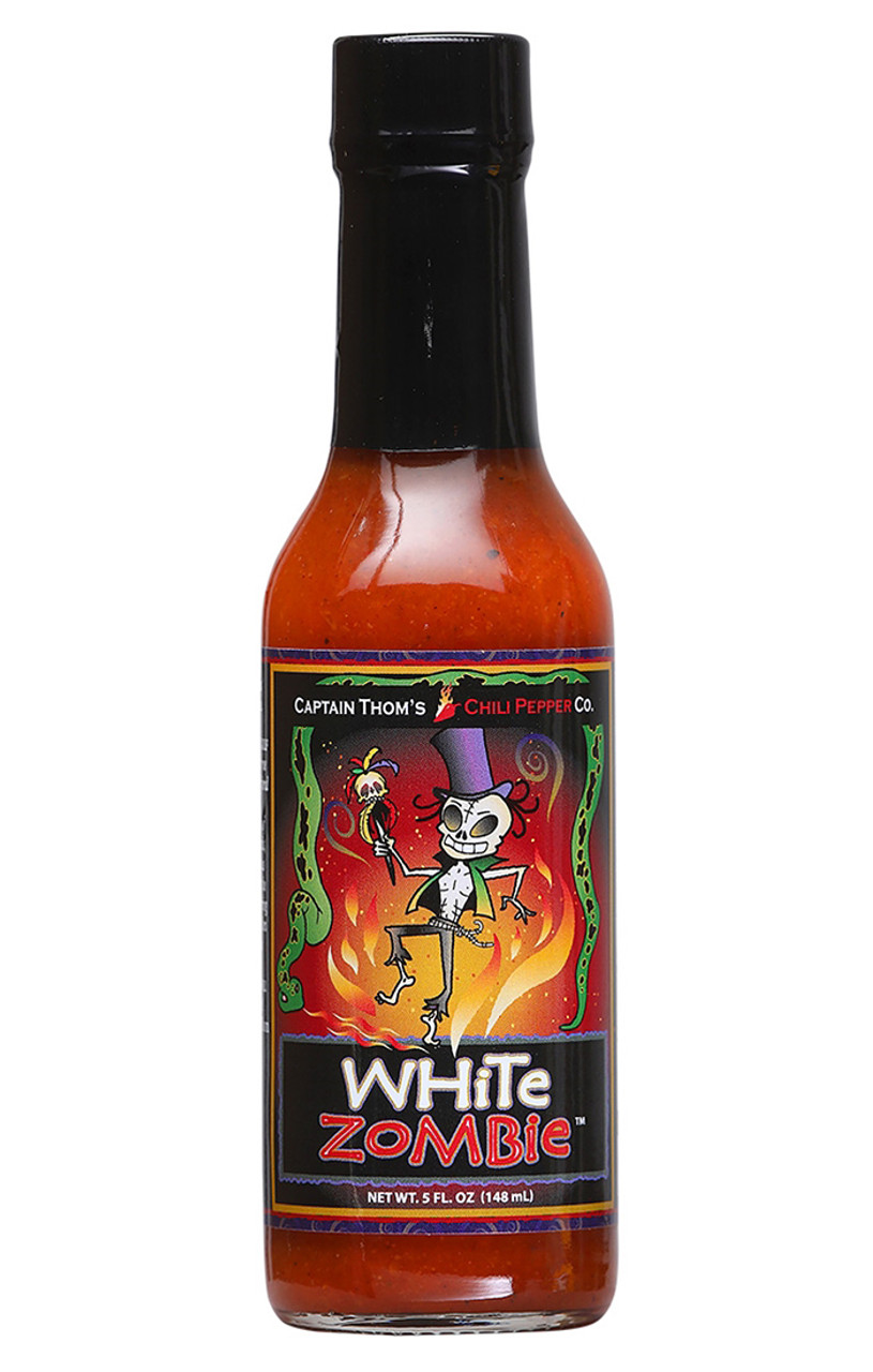 White Zombie Hot Sauce, 5oz.: Captain Thom's trade route takes him and his crew to many places.Try the Voodoo Juice and it will bring on the voodoo in you, too!