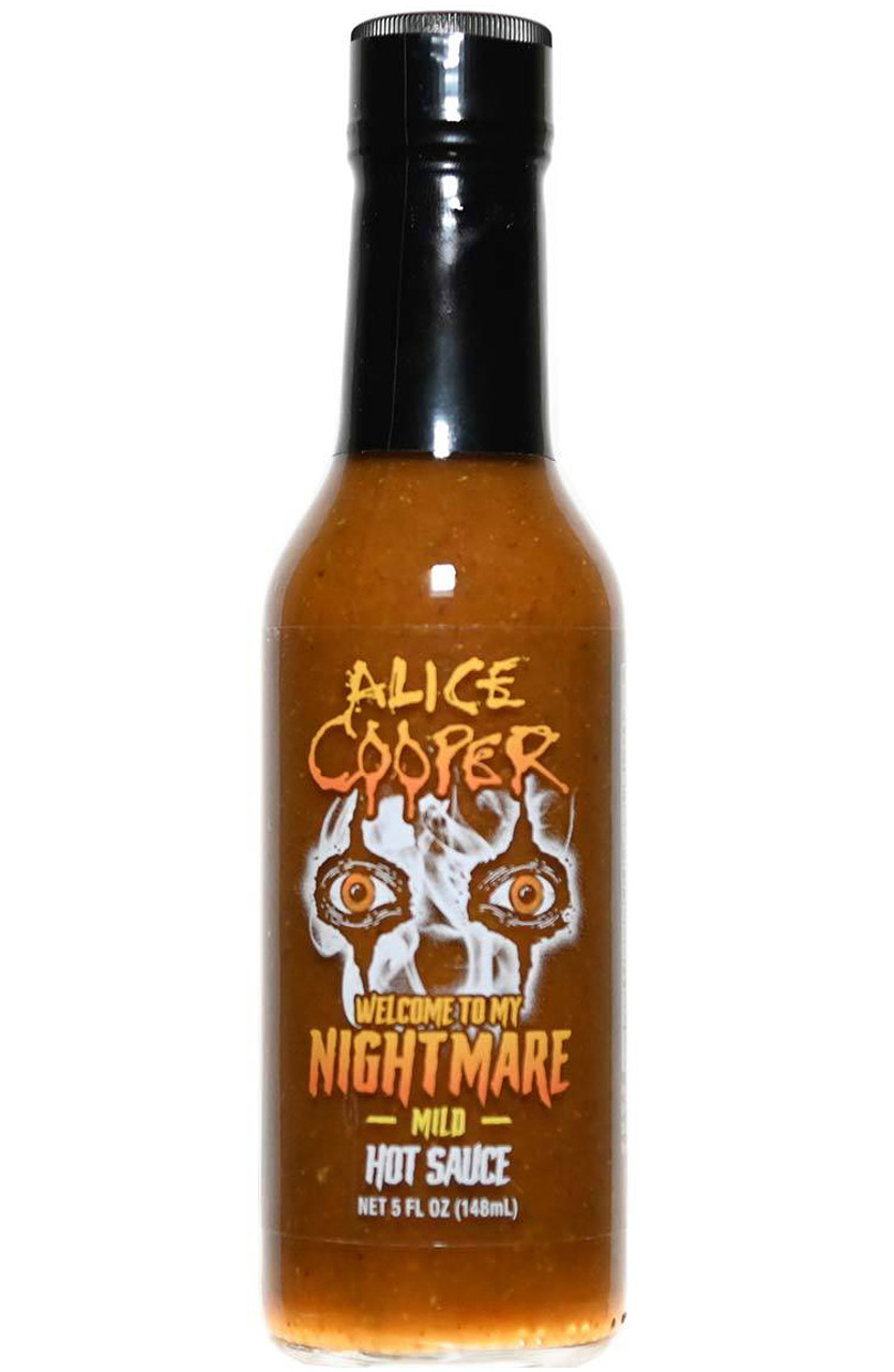 Alice Cooper Welcome To My Nightmare Mild Hot Sauce, 5oz.: I think you're gonna like it. The great taste of the medium heat of Serrano chiles with an early flavor of lime. But don't let it scare you, this robust flavor of garlic and a hint of cumin will have you feeling right at home with this Southwestern sauce.