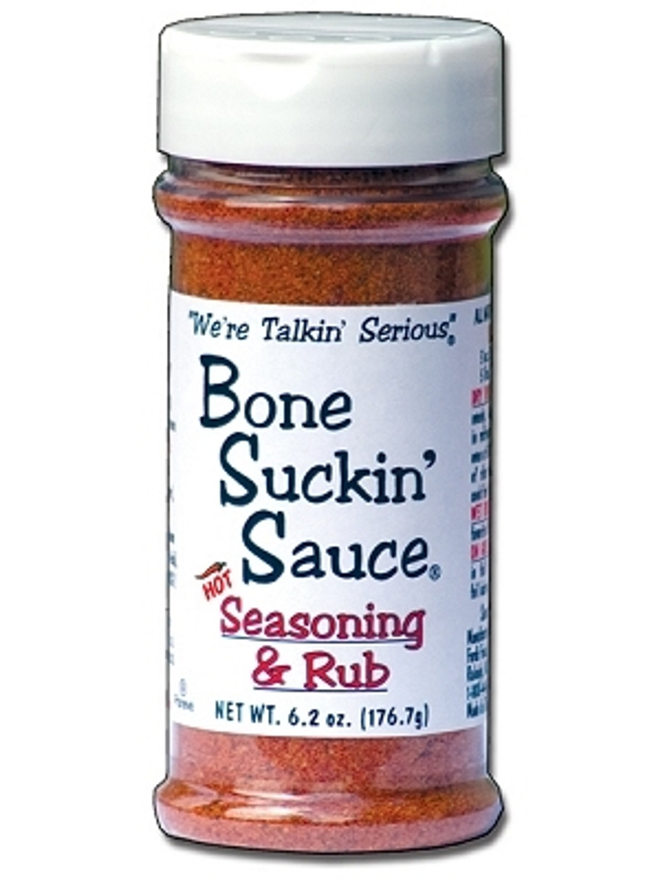 Bone Suckin HOT Seasoning & Rub, 6.2oz.: Bone Suckin’ Sauce Seasoning & Rub now available in HOT! A cayenne kick is the perfect addition to the proprietary blend of brown sugar, paprika, garlic and spices in the original. This perfect combination of spicy, salty and sweet brings just the right amount of heat to this versatile new product.