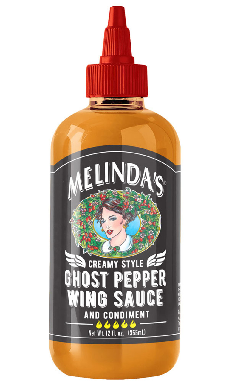 Melinda's Creamy Style Ghost Pepper Wing Sauce, 12oz.: A delicious blend of ghost, cayenne and habanero peppers. Our philosophy is simple. Heat and flavor mean everything. In Melinda’s Kitchen, Creamy Style things buffalo. We blend cayenne, habanero and slathered on a chicken wing. Ghost Pepper Wing Sauce and Condiment is crafted to be a table sauce and a coating for all ghost peppers together to make the most irresistibly spicy and tangy sauce you’ve ever slathered on a chicken wing.