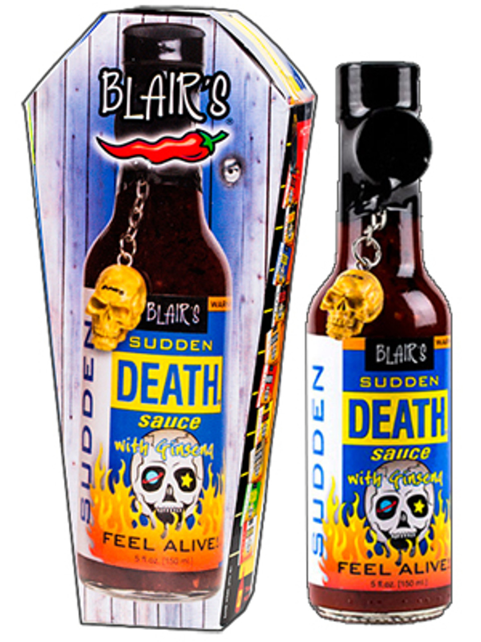 Blair's Sudden Death Hot Sauce (5 FL.OZ. / 150 ml): Made with real Siberian Ginseng. Take Mounds of Fresh Red Habaneros, Mash Um Up. Slice Up Some Firery Cayenne Chilies, Squeeze in The Lime Juice and WAIT...Don't Forget the Clover Honey and Ginseng and We Have Blair's Sudden Death. FEEL ALIVE Made with GREAT Karma. Blair's Sudden Death Hot Sauce from Blair Lazar's cauldron is KILLER.