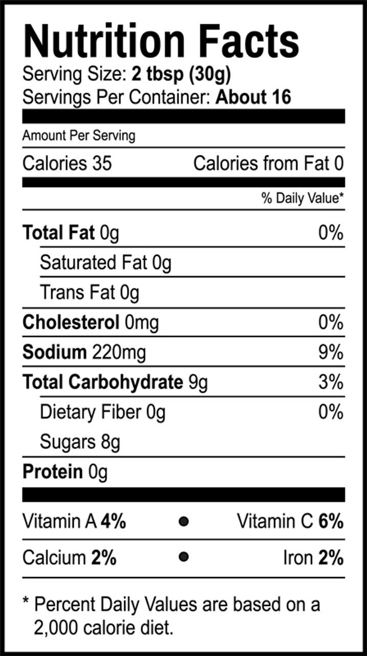INGREDIENTS: Ketchup (Tomato Concentrate, HFCS, Corn Syrup, Vinegar, Salt, Onion Powder Spice and Natural Flavors), Water, White Vinegar, Mustard, (Water, Vinegar, Mustard Seed, Salt, Tumeric), Apple Cider Flavoring, Light Brown Sugar, Margarine (Liquid Soybean Oil, Partially Hydrogenated Soybean Oil, Water, Salt, Soy Lecithin, Vegetable Mono and Dyglycerides, Potassium Sorbate, Citric Acid Added As Preservative, Artificial Flavor, Beta Carotene, Vitamin A Palmitate, Contains Soy), Minced Onions, Salt, Xanthan Gum, Black Pepper, Cayenne Peppers, Potassium Sorbate, Sodium Benzoate.