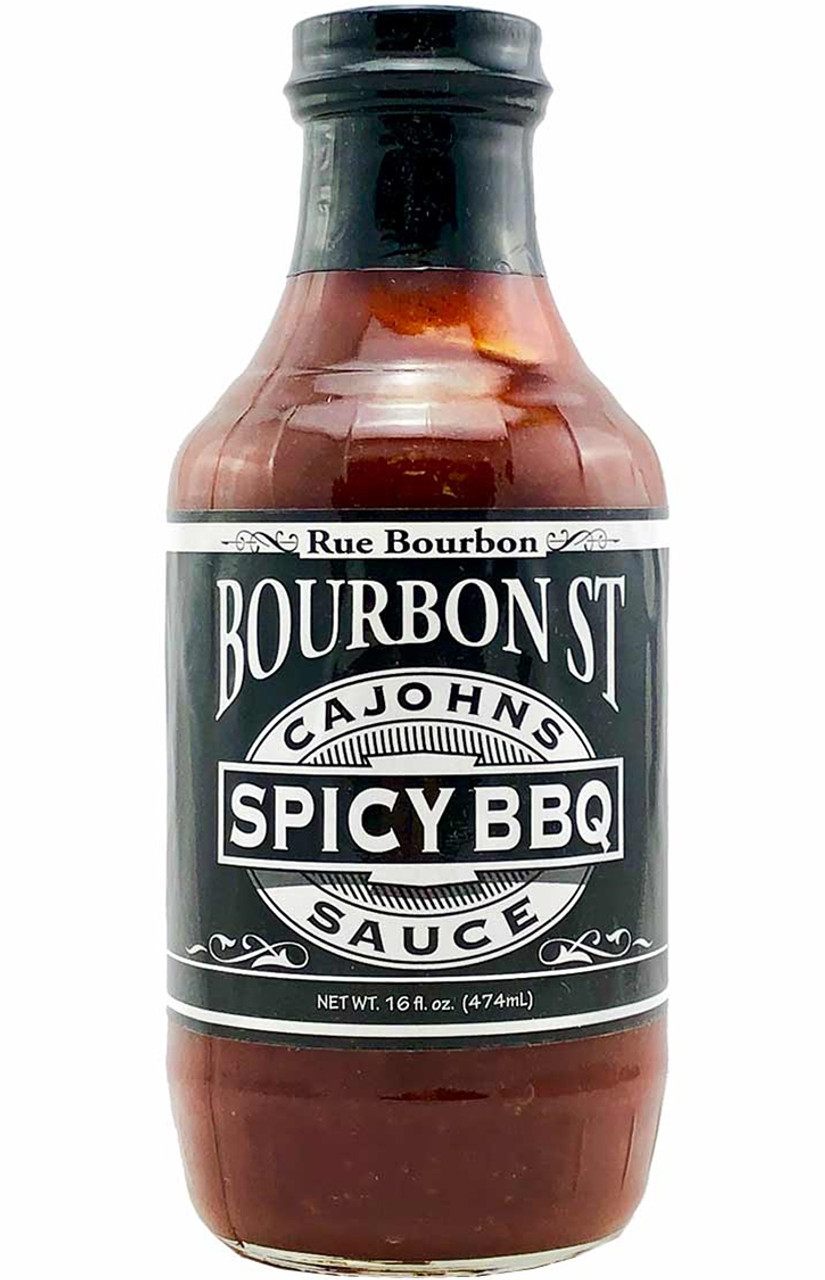 Cajohn's Bourbon Street Spicy BBQ Sauce, 16oz.: Bourbon whiskey provides the background for this wonderful BBQ sauce. If you want to fire it up! Fiery is just the ticket. Made with only the finest of ingredients including organically grown chiles, Jim Beam Bourbon, organic wheat free Tamari and sweetened with organic agave nectar. This finishing sauce will brighten your "Q" no matter if it's pork, beef, chicken, seafood or veggies. Enjoy!