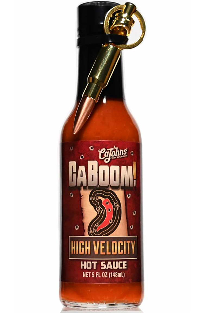 Caboom! High Velocity Hot Sauce with Bullet Keychain, 5oz.: One of the newest additions to the CaJohn's catalog of Extreme Hot Sauces. Made with 1 Million Scoville Extract. Jalapeno Peppers combined with Pepper Extract make this a lethal hot sauce. Includes a Bullet Bottle Opener Keychain, a unique gift for the Hot Sauce Collector.
