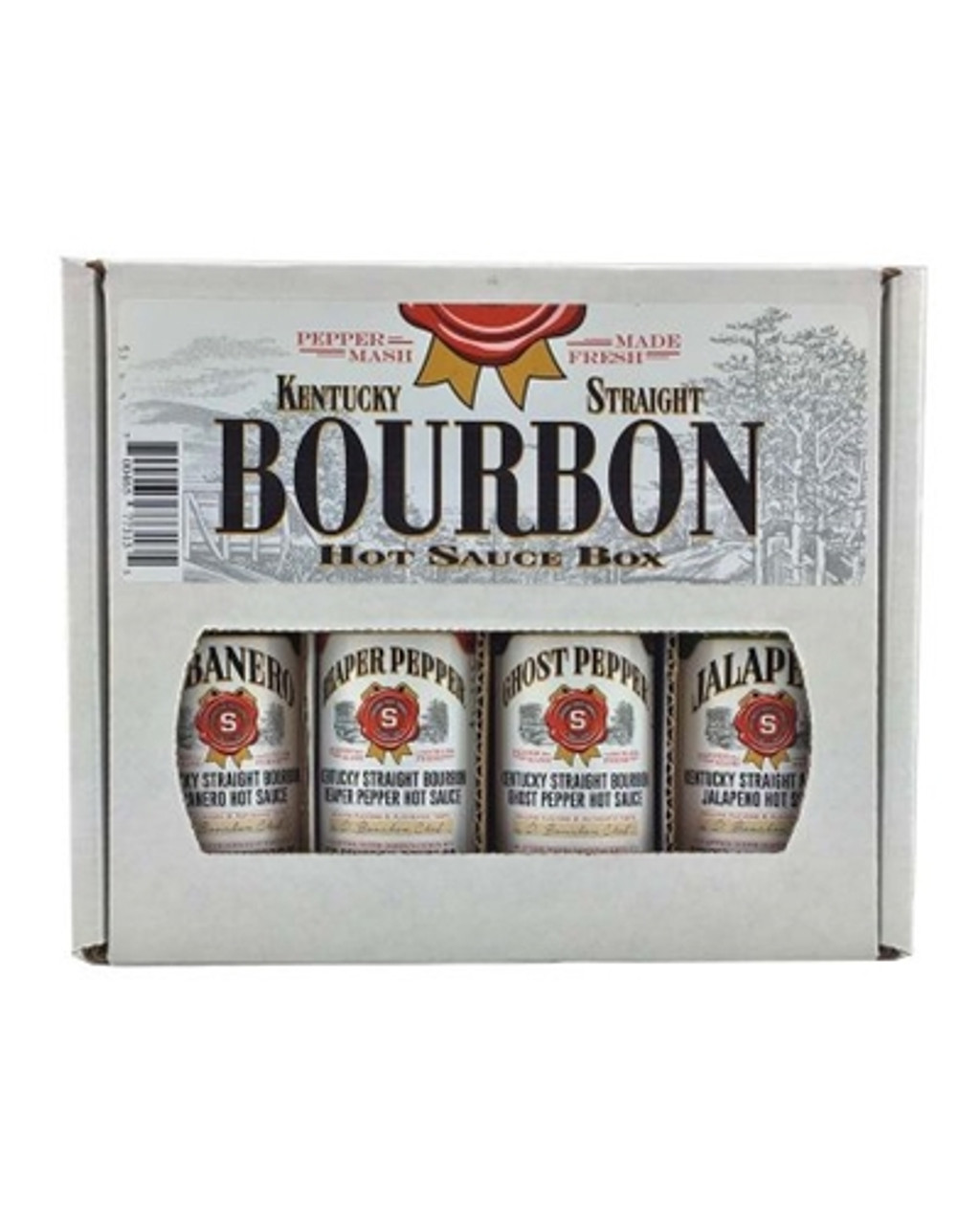 Kentucky Straight Bourbon Reaper Pepper Hot Sauce Ingredients: Reaper Peppers, Red Wine Vinegar, Tomato, Water, Onion, Bourbon, Garlic, Vinegar, Salt, Contains 2% or less of Spices, Sugar, Xanthan Gum, Calcium Chloride, Citric Acid.