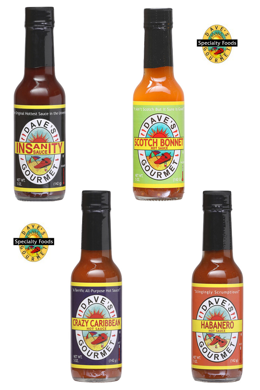 Dave's Gourmet Insanity Spicy 4 Pack, 4/5oz.: A variety of 4 of Dave's Medium to Hot heat level hot sauces.